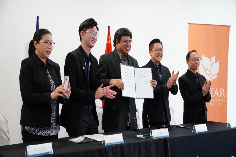 嘉興南洋職業技術學院黨委書記、校長王雪亙,馬來西亞優理國際大學校長名譽教授丹斯里拿督斯里薩侯哈密阿布巴卡博士,公司副總經理魯富貴等領導參加簽約儀式。